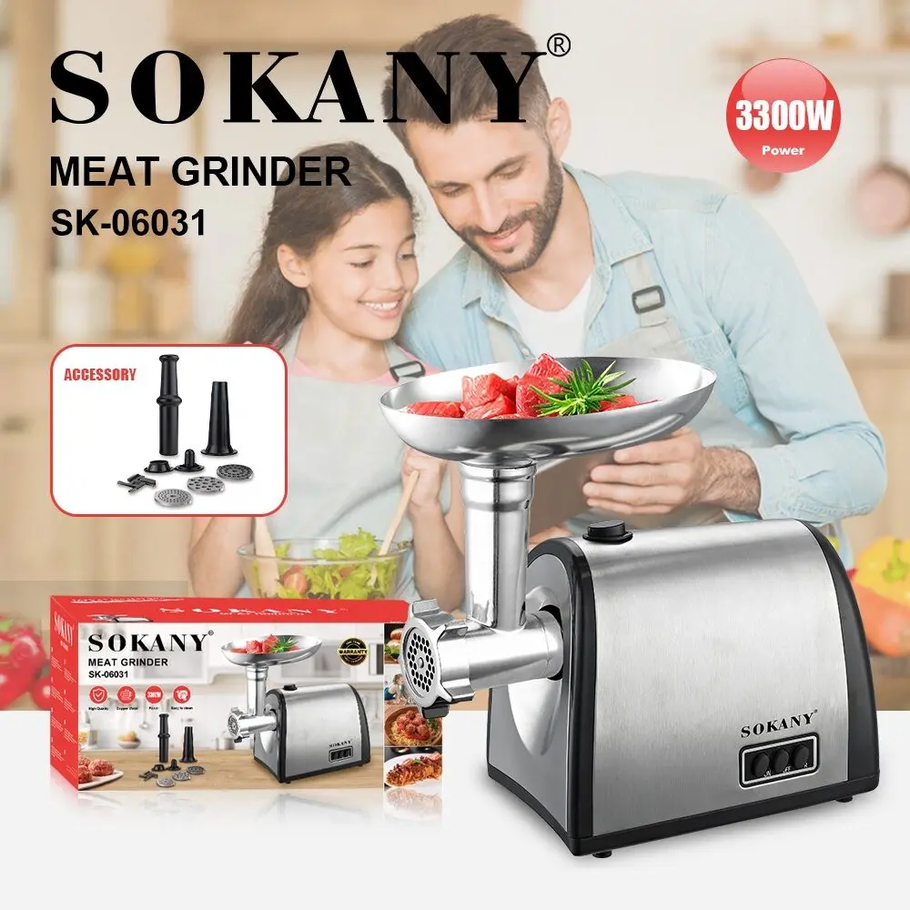 لو بتدوري على مفرمة لحمة قوية وسريعة تريحك في المطبخ، يبقى مفرمة لحمة سوكاني SK-06031 استانلس ستيل 3300 وات هي الاختيار الصح 👌
